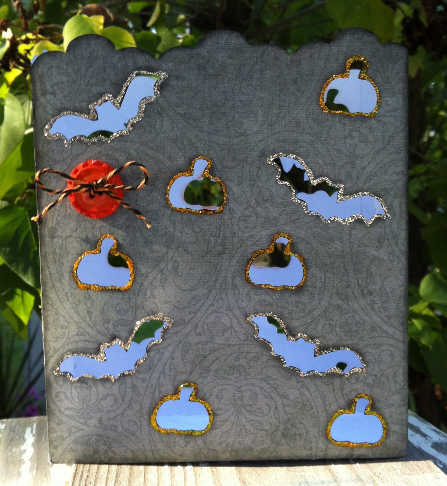 ...a card. Looks simple, right? Not quite. But I loved creating it! I used my Silhouette Cameo, pen holder, a Prismacolor Pencil, and a Scraptastical Kreations file. After drawing the tree and bat, I stickled the bat to make it pop. I outlined the tree with a gold gel pen to give the card a bit of depth and visual interest. The label is from another Scraptastical Kreations file. I distressed it with distress ink, stickled the edges, and added my letters. I really do not have any letters in my stash. Don't know why, I just don't. :-)